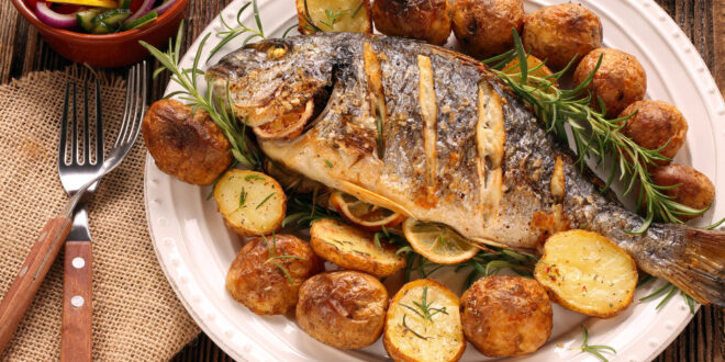 نظفي السمك جيداً واقطعيها في الوسط، ثم ضعي القليل من الحشوة في داخل كل سمكة.
