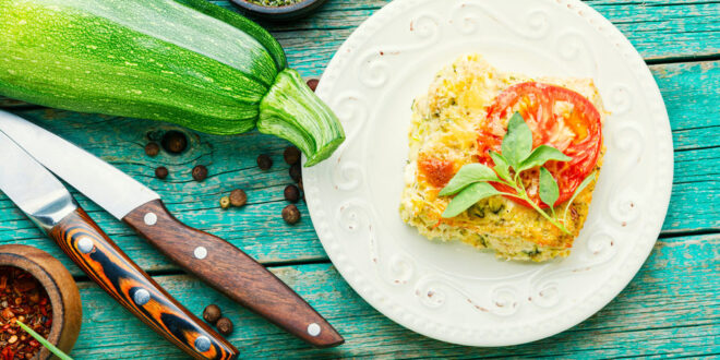 وزّعي الكوسا مع البيض على الأطباق، وزيّنيها بالبصل الأخضر المفروم وقدّميها ساخنة.