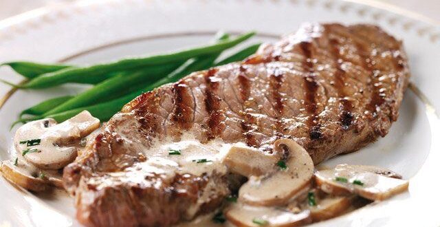 ما ان يشتد المزيج ويتجانس، صبيه فوق ستيك اللحم في طبق التقديم، وقدميه على المائدة.