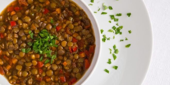 في وعاء متوسط الحجم، ضعي العدس مع الماء التي تغمرها بالكامل، ورشة من الملح واتركيها إلى أن ينضج العدس.