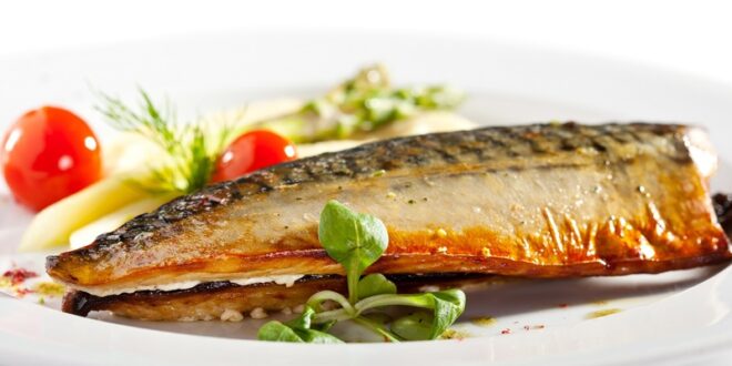 قدمي سمك الماكريل بالبطاطس ومعه أرز صيادية وسلطة عربية.
